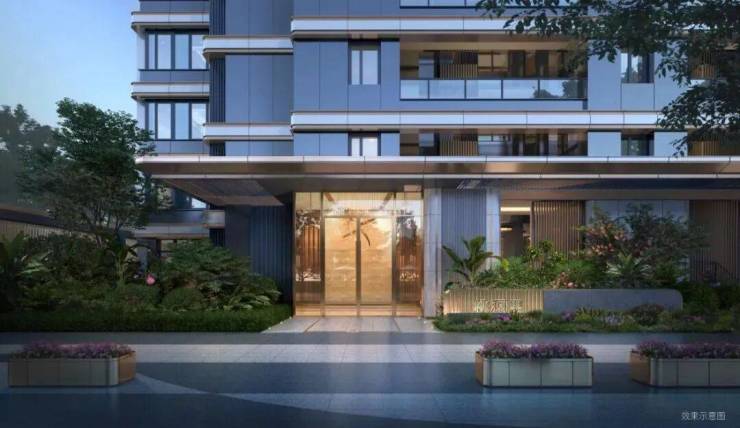 桃源里不仅远眺颜值出众,每一处细节都体现了精致感与仪式感,一个800w级的新盘,竟然还为入户单元设计了 昭示性景墙+专属入户铺装 , 而不是简单地把楼栋号安装在门洞之上