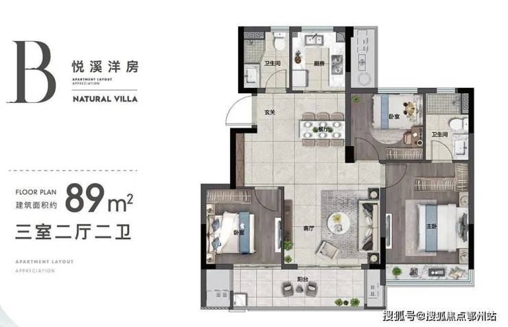 就连 建面约80㎡的户型,都做到了三房两厅一卫 ,尤其是户型样板的呈现,产品力惊人。有着日月城置业、宝龙地产、深石地产,三大房企的联袂背书,又是墅区洋房中的小户型,悦景湾还没开盘便已经让人期待万分了!今天就随着哈楼绍兴的脚步一起探访悦景湾80㎡和89㎡的户型魅力!
