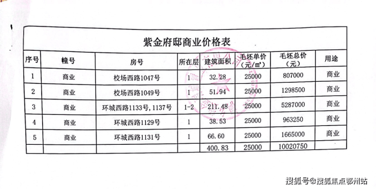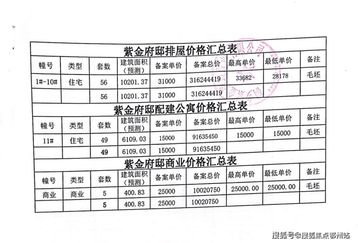 ◆本次预售详情:本次申报预售的商品房为紫金府邸第1期,共计10幢及商业,其幢号为 1、2、3、5、6、7、8、9、10、11幢,建筑总面积30631.5㎡,用途为住宅、商业;1、2、3、5、6、7、8、9、10幢总层数为3层,(地上3层、地下1层),11幢总层数为12层,(地上12层、地下3层)。可销售住宅105套,建筑面积16310.40㎡,可售商业5套,建筑面积 400.83㎡。