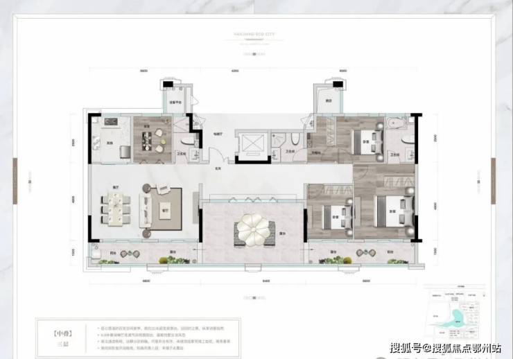 户型方正,南北通透,全面采光,动静分区,3+1灵动空间设计,南北双向景观大阳台,阅览四季美景