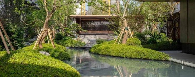 聆星客厅前方种植了松界王者—— 日本黑松 ,约4000万+的顶豪融创外滩壹号院的社区内,也有一颗同款;