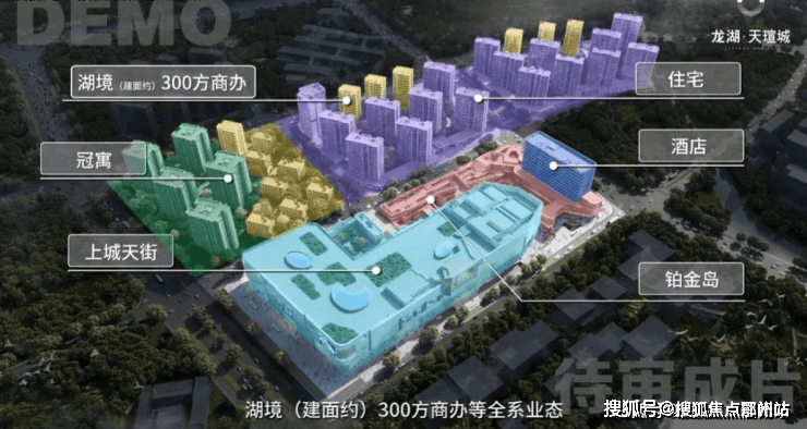 下楼即享,铂金岛商业,24小时繁华不息,还有星级酒店、高品质住宅、湖境300方、天萃叠院等产品,焕新城市人居。