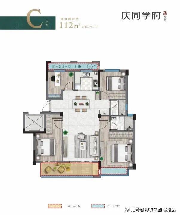 庆同学府共有约70㎡、90㎡、112㎡三个户型,一楼为复式带花园户型,顶楼为复式带露台户型。5层洋房,得房率更高,有限空间内创造更多生活可能。