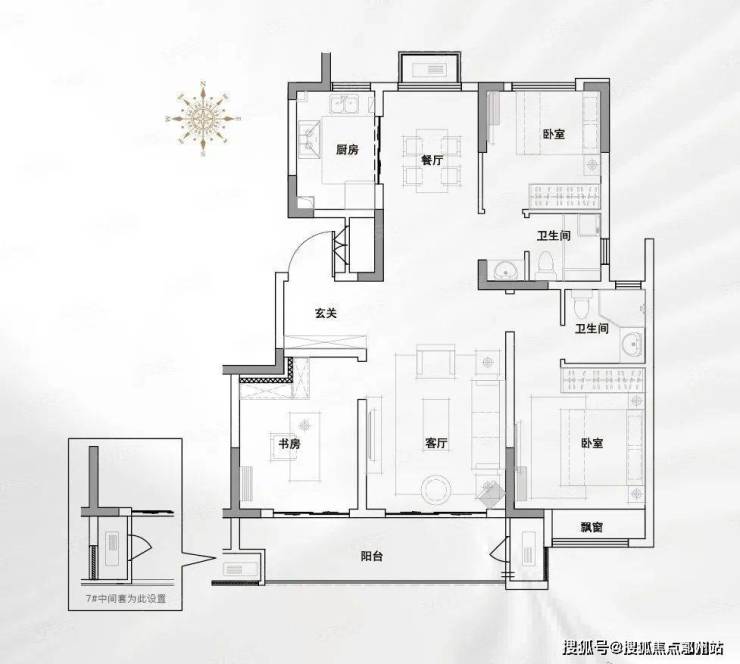 105㎡户型设计非常优越、面积小总价低,三房简约实用,采光充足,整个空间都是全明设计,各功能空间均带明窗。三开间朝南设计,双卧及客厅朝阳,北向次卧相对安静。