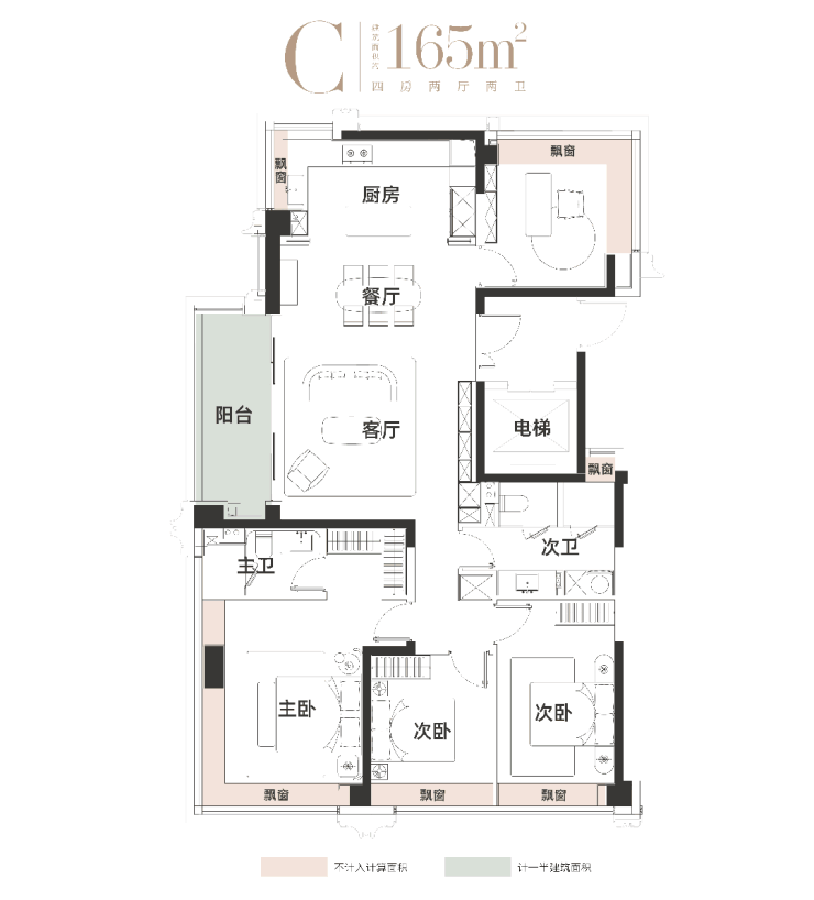 如果说124㎡户型是精致生活的基础范本,那165㎡便是全景视野下的功能进阶之作。