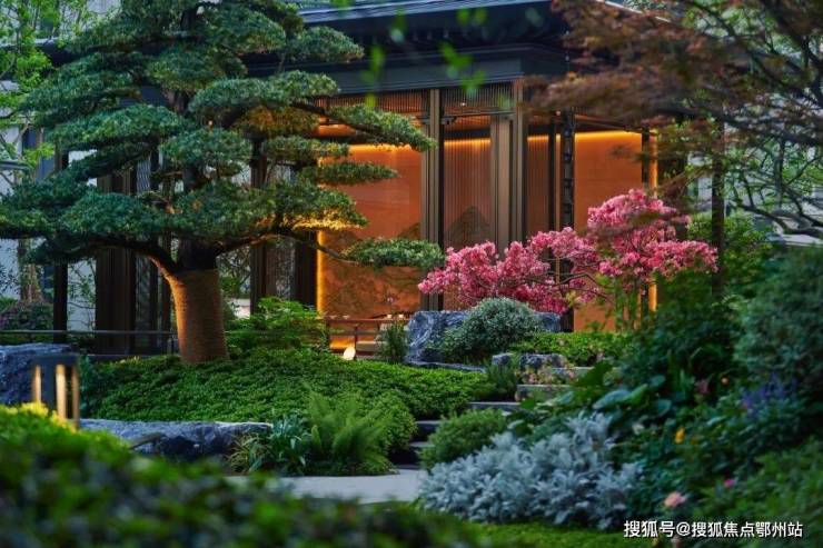 例如单元入户花园,上层以或婀娜乌桕或飘逸朴树为主,下层灌木种植矮婆鹃,夏鹃,金莎曼等, 质感细腻,清新雅致。