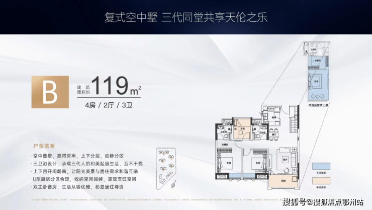 户型图手握 建面约119㎡复式产品,周南学府一出场就可谓大杀四方。原因很简单——