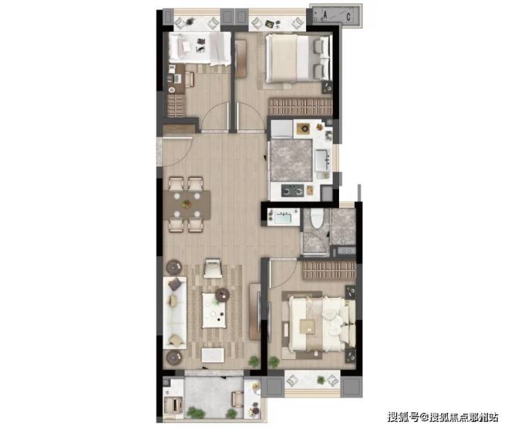 C户型 建面约88㎡ 三室两厅一卫