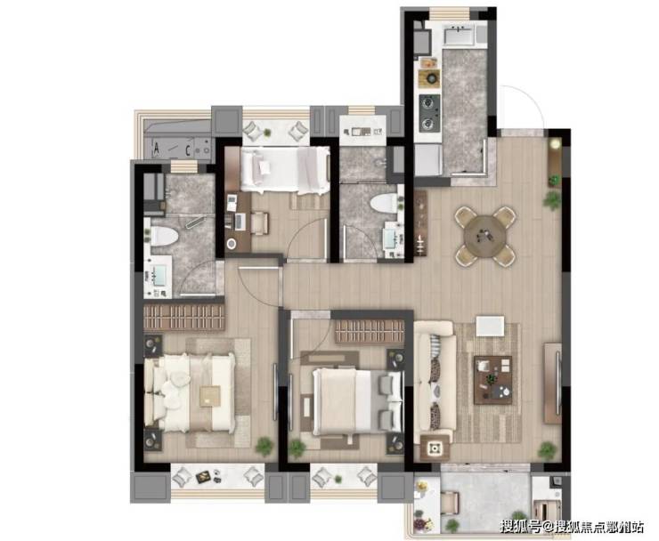 主力户型图A户型 建面约98㎡ 三室两厅两卫