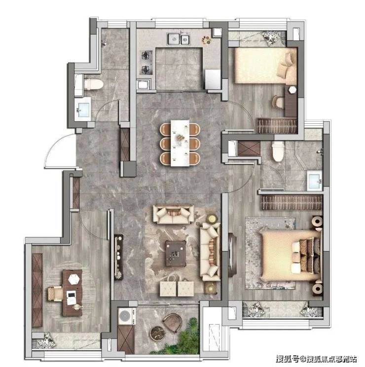 从两口之家到三代同堂,整体户型的空间设计包容几代人生活习惯,既能有一家人共享天伦之乐的区域,又能留有充足的个人空间。
