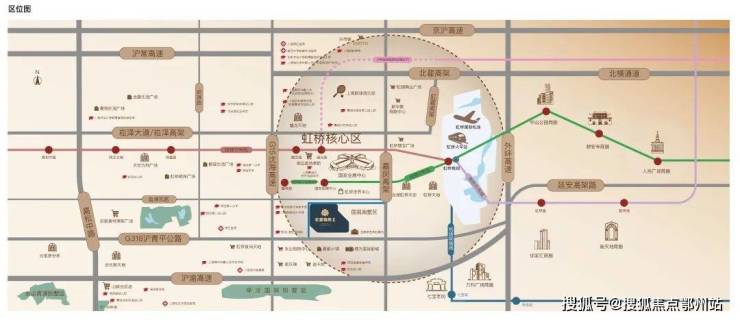 项目位于大虹桥商务区。直线距离国家会展中心约1公里(数据来自百度地图测距,仅供参考),3公里内坐拥约11万方夏都小镇、约50万方蟠龙天地、约6.2万方虹桥天地、约43万方虹桥天街等超百万方商业地标IP配套,国际名校、科创产业、多维轨交、医疗配套等资源环绕。