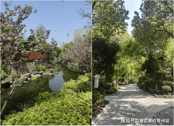 项目社区采用五重景观层层叠进,真石假山造景,承延墅区臻贵肌理的雅趣园林,引入自然河流,打造三面环水的滨水谧境,无界相融生态绿境,将社区、建筑、河流串联的相映成趣,自然围合,移步景异,营造极具魅力的惬意日常。