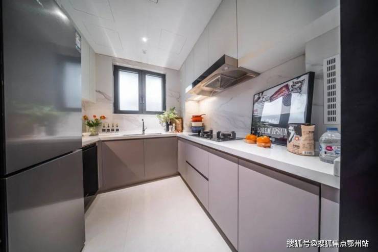 U型厨房设计,左侧预留了 冰箱位置,让整个空间的利用率更高。
