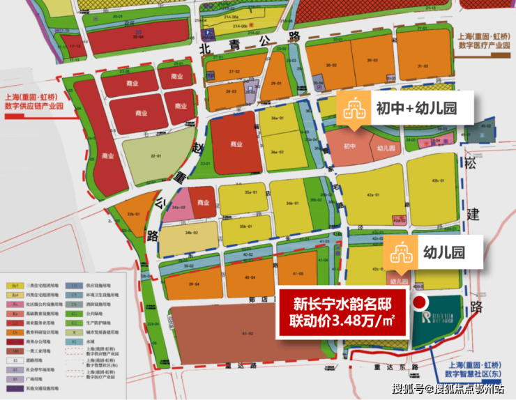 同时,新长宁水韵名邸位于重固南部,规划能级相对较高,重固南部虹桥无界百创城,聚焦数字经济,构建一核两翼,引领未来产业高地。其中,生命健康创新之核布局细胞疗法等精准医学领域研发机构;数字绿色科技产业“未来之翼”构建新能源、智能网联汽车配套集群;总部和服务经济“活力之翼”,导入长三角民营企业总部,链接国际市场。