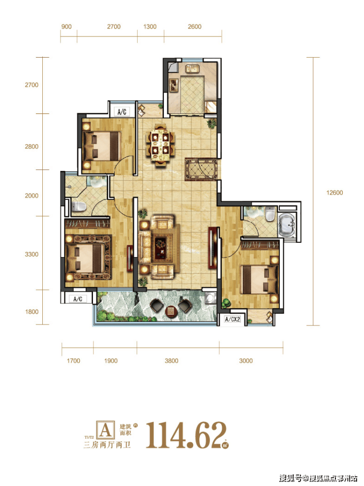 一期:T1/T2:114平 2T2H—17层