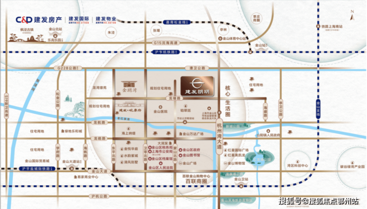 项目所在位置,近距金山铁路,快速直达上海南站,无缝换乘1/3/15号线,畅达全城,快捷直上沈海高速,直达大虹桥,日常丰盛从容,出行便利通畅,现代、繁华、诗意的生活盛宴,正于此拉开华丽大幕!