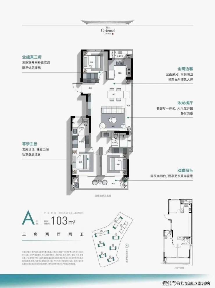 约103㎡边套户型,则是经典边厅格局。