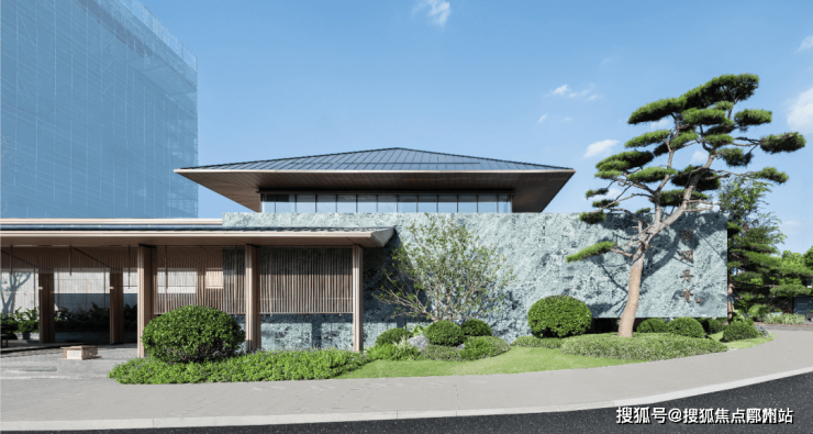 游廊外还半围了一道翡翠景墙,造价约100万。景墙外立着1棵高约8米、30年树龄的黑松,有西子湖四季酒店的神韵。