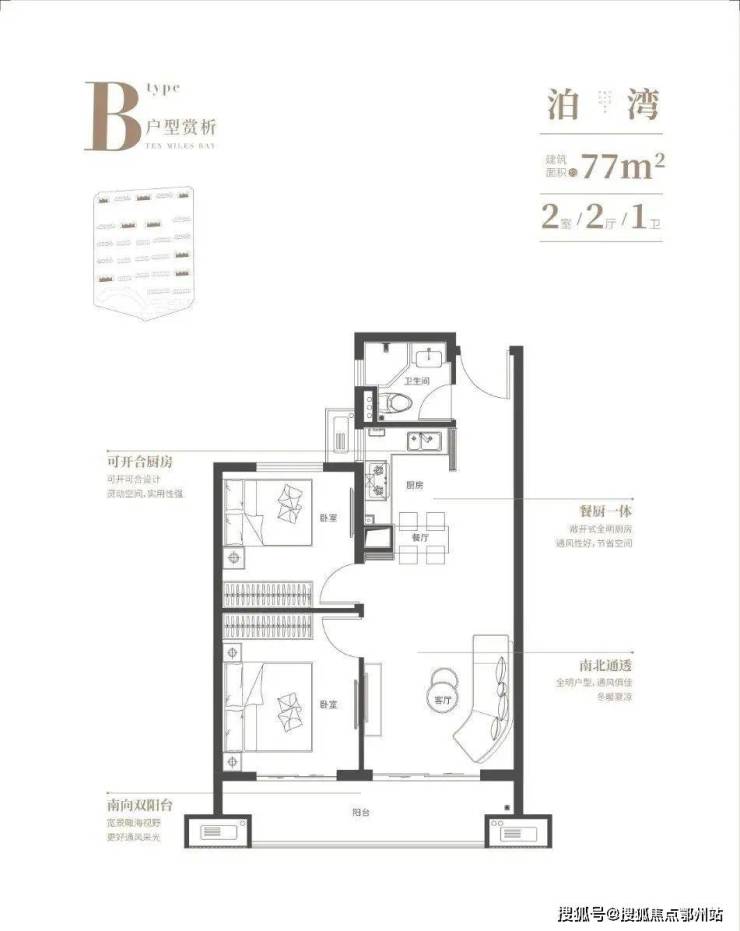 小高层(10-11层):统一77㎡(2室2厅1卫)。