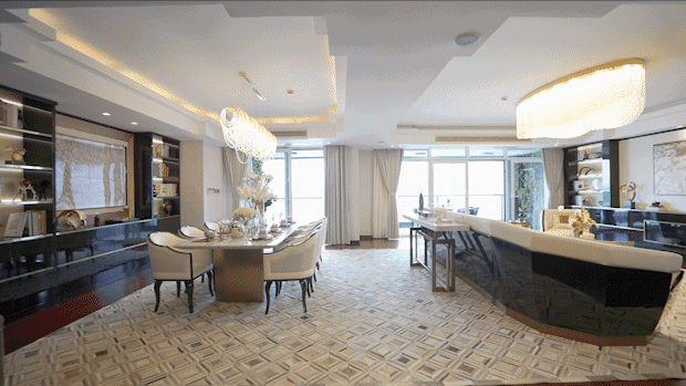 无论全家在餐桌前欢聚一堂,还是孩子们在客厅嬉戏,你一抬头便是以江景和陆家嘴建筑群为主题的壮丽景观。