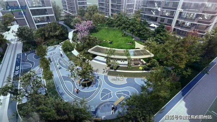 项目整盘绿地率高达约35%,设计以“生命之树”为设计灵感,布局景观园林16景,在中央围合出多重景观组团,为整个空间增添了许多生机与活力。