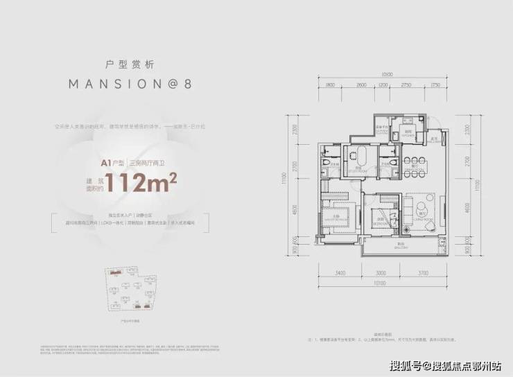 建面约112方三房两卫: