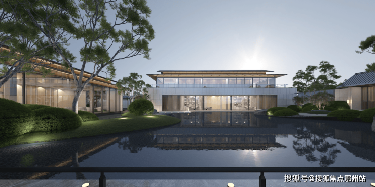 兰溪苑 ——池泉烟波/桕林依岸/邀月揽怀。核心泳池会客区设立于此,四周种植乌桕,与水面相互映衬,是会客谈笑的静谧之地。