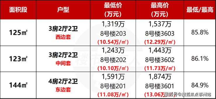 把8# 整栋的一房一价整体来看,你会发现它的定价并不是“均摊”而是很有方向感: