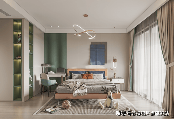 主卧拥有约16.7㎡的套房空间,衣柜动线明晰,不挤占空间,一张1.8米的大床入室,旁边放张婴儿床丝毫不是问题。最重要的一点,