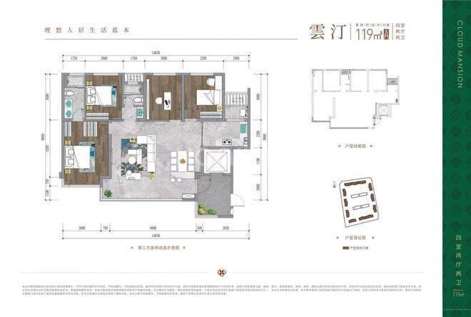 在传统高层中,119㎡可能只是一个紧凑三房。但在嘉禾雲境,得益于2梯2户的纯板式结构和高得房率,97㎡的实得空间被极致利用。户型方正通透,功能分区明确,是首次改善的性价比之选。