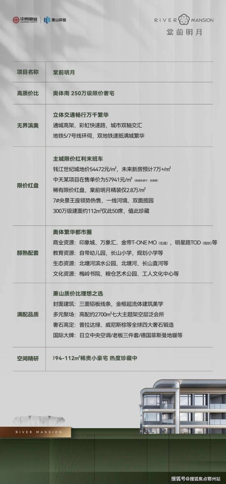 钱江世纪城地块拍出54472元/㎡楼面价,与项目直线距离仅约2km的北干地王目前在售均价约57941元/㎡,而棠前明月目前在售均价仅约2.8万/㎡,以其超高质价比,受到了城市青年的追捧与认可。现阶段放眼整个萧山,可选的250万级高品质小豪宅已寥寥无几。(数据来源:安居客、链家网、钱江晚报)