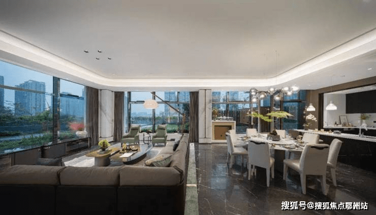 室内基本都用全景落地长窗,三个采光面加起来竟有约54米,相当于窗外有“2.5个IMAX屏幕”那么长的风景。再搭配标准层约4.19米的层高,空间感霸气无匹。