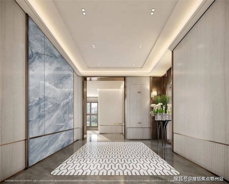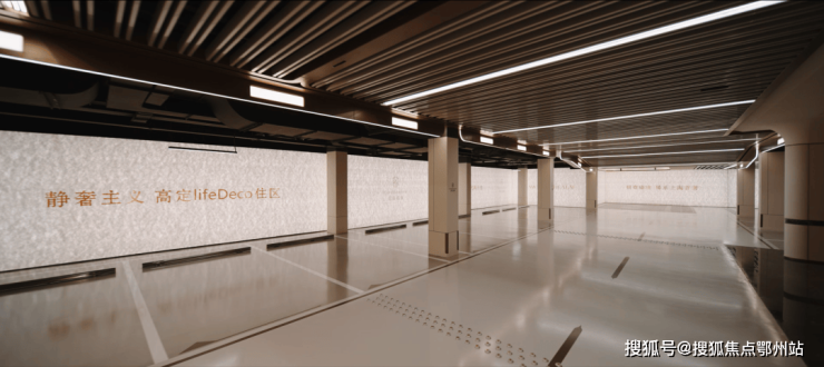 过去在豪宅项目才能看到的类似于“星空顶”地下车库坡道,招商臻境使用了看来 更加高级的香槟金色吊顶,并加上穹顶闪耀的“追光”坡道! 精装的地下大堂,配置了 自然的采光井以及专属等候区 ,如同高级酒店的首层大堂,极尽礼宾仪式! 精装地上大堂,地面的石材拼花造型,墙面的石材背景 ,将静奢海派的艺术展现的淋漓尽致!