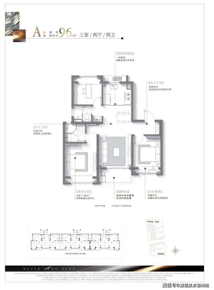 建面约96㎡精质三房,一步到位舒适人居:该户型方正格局、南北通透无连廊,既容纳二人世界的浪漫,也可将三口之家的幸福一并珍藏。