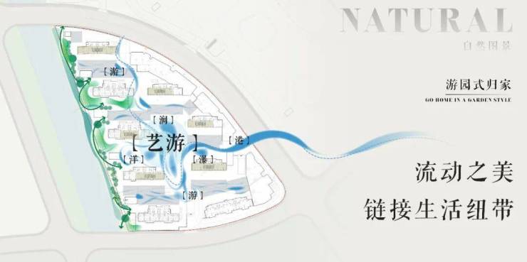 整个社区被水系环绕,繁星式楼栋布局,充满仪式感的景观与浓绿自然的植被,无论是精心设计的景观小品,还是那郁郁葱葱的树木花草,都让你在繁忙的生活中找到一份心灵的慰藉与安宁。