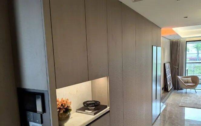 归家门厅设计为弧形顶棚,非对称构图,圆润的形式提供给业主放松的情绪价值。可以说是处处体现人居的松弛感和舒适度。