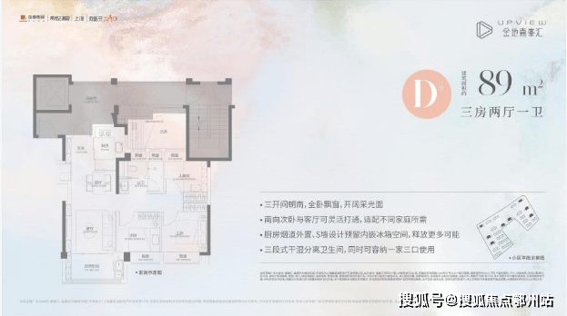 高层:建面约89㎡(3房2厅1卫)