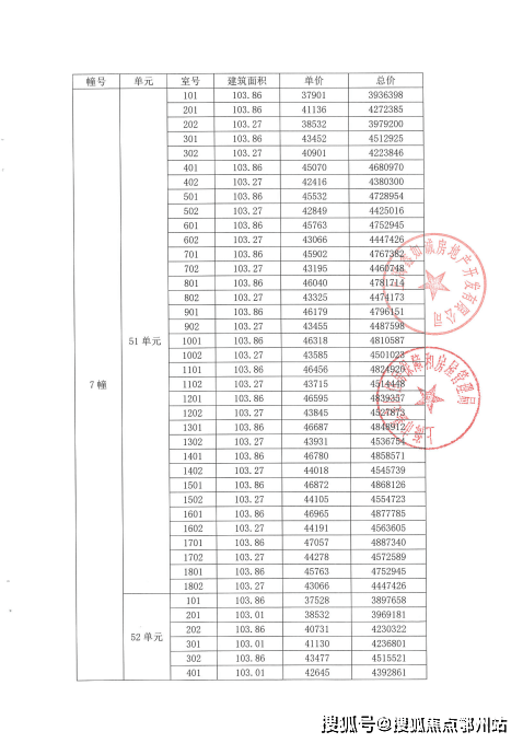金地嘉峯汇一房一价表: