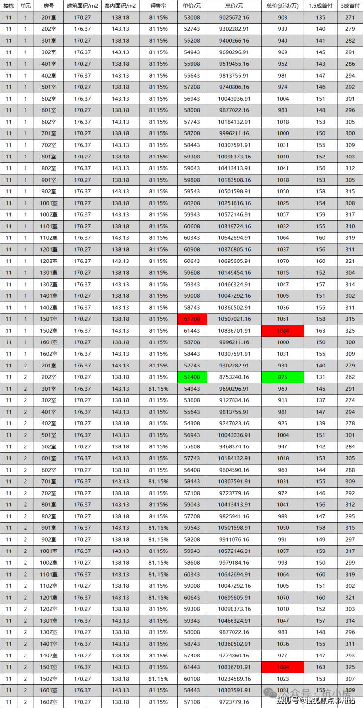 (备案单价和总价中标记绿色的表示最低价,标记红色的表示最高价)