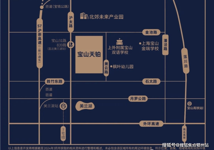 教育资源校方面:项目东南位置直线50米处即为宝山枫叶幼儿园规划用地;项目毗邻在建中的金茂K12国际学校,这是一所涵盖幼儿园托班至高中的十六年制高端民办国际双语学校; 上海外国语大学附属宝山双语学校,公办九年制,已经开学。