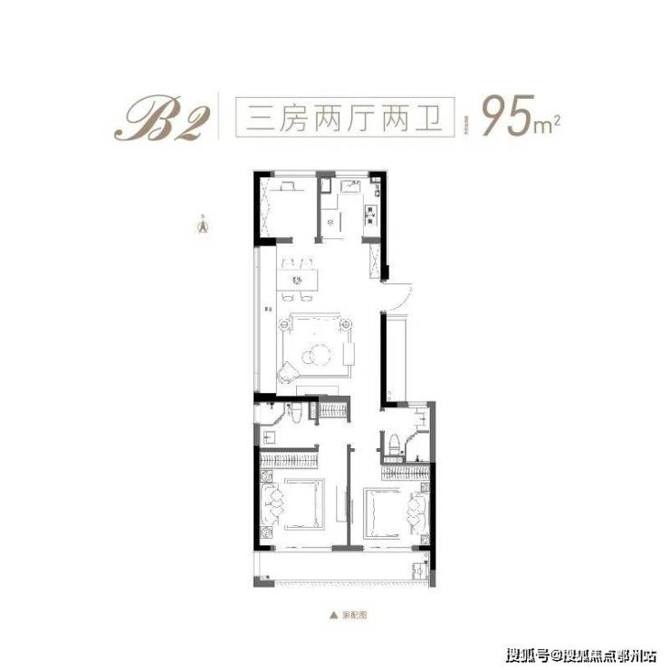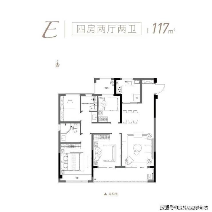 改善家庭格外中意约117㎡户型,该户型对面积的极致利用说的就是它! 毕竟这个面积段内能够做出4房的设计,在市场高层120㎡面积下,能做4房的户型非常少见。大华·峰汇华城建面约117㎡户型不仅在有限的空间内合理规划出四个方正空间,更是破天荒地做到了三开间朝南横向布局。