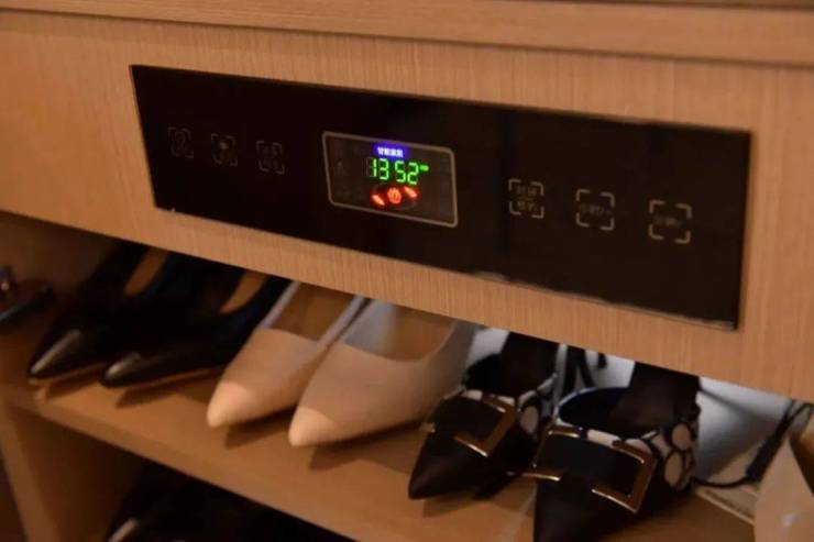 第一道屏障是玄关消杀系统 ,项目配置鞋柜精灵,健康祛味除臭、恒温烘干除湿除潮,保证室内整洁清爽。