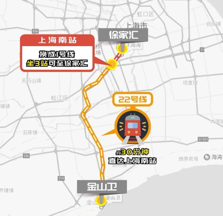 大家都知道,22号线是金山连接市区的交通命脉, 建邦国宸府与始末站金山卫站距离仅约750米,步行可达, 最快32分钟就能抵达上海南站。