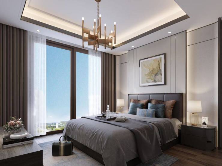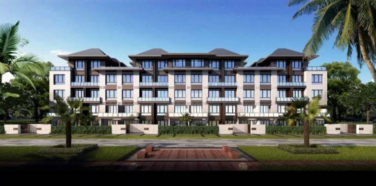 从产品形态上看, 建邦国宸府 打造的是金山新城极为稀缺的 墅居产品 ,由 高层+叠墅 组成,建筑风格为 现代中式滨海风格 。其透露出的中式意境和构图美学我们可以从景观绿化一窥端倪: