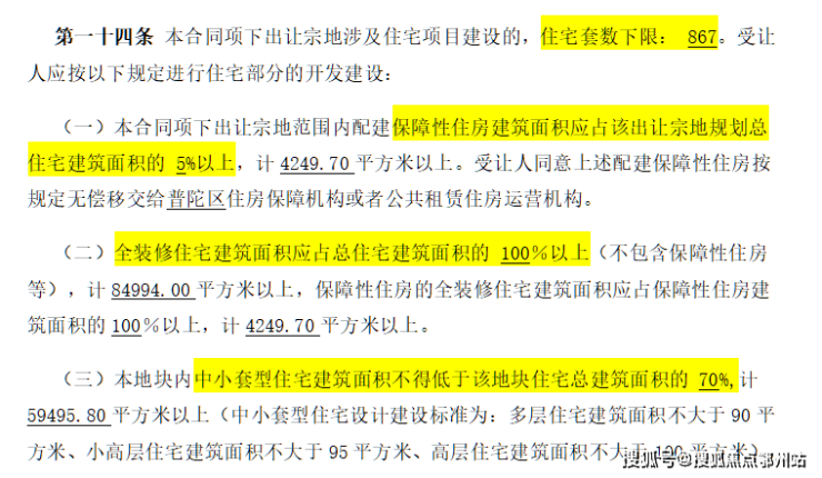 地块用地性质为普通商品房,容积率约2.5,限高80米,住宅套数下限867套,需配建5%以上保障性住房,中小套户型不得低于70%, 全装修比例100%!