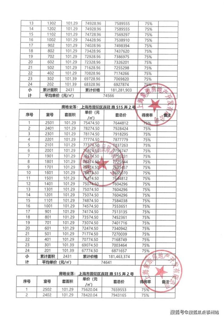 一房一价表