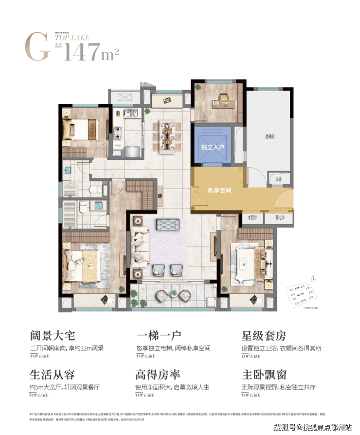从整体空间到人性化设计,建面约147㎡户型的每一个细节都演绎理想湖居!