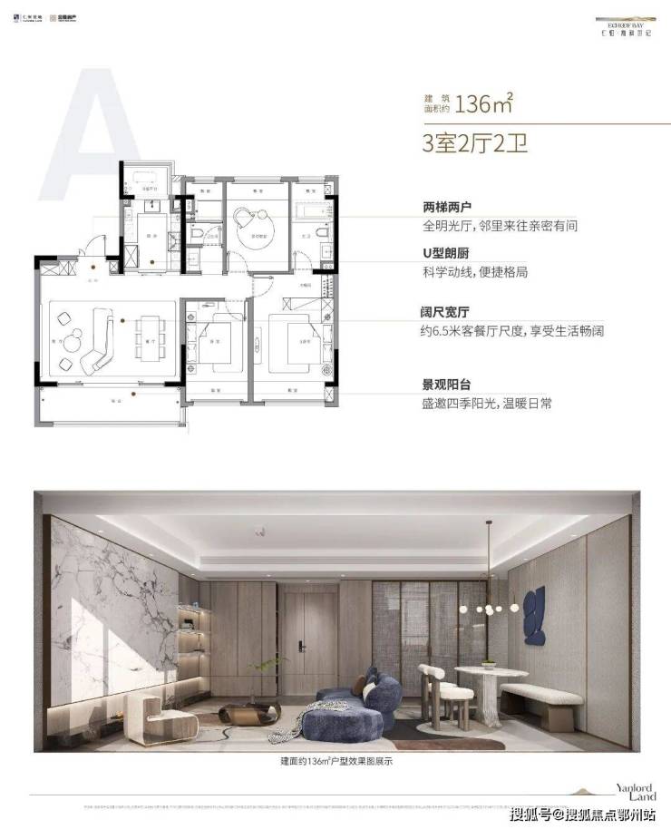 约9.4米宽幕阳台,令惬意无限伸展; 客餐厨阳台连厅、双套房设计,主卧超大收纳、大尺度飘窗,让生活更有品质感和仪式感。