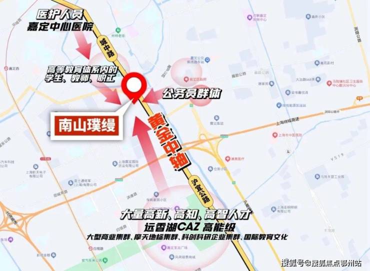 而在嘉定,主轴只有一条:城中路-沪宜公路-嘉闵高架组成的烫金主轴。