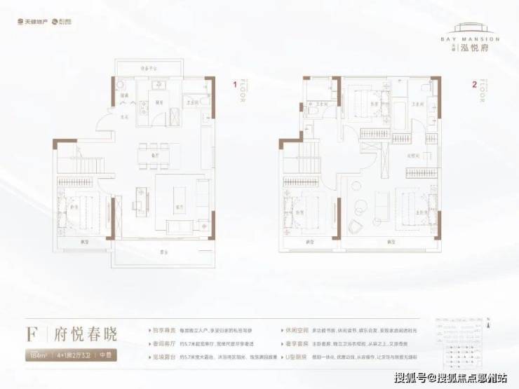 上叠也是184㎡,户型与中叠几无二致,但多了三层,可以做个书房。